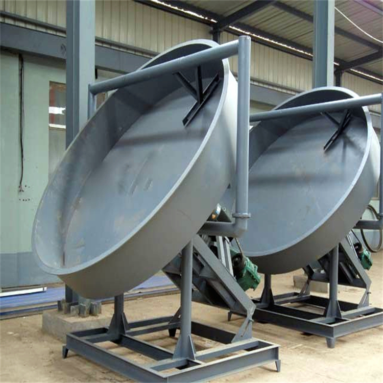 圓盤造粒機(jī)的主要工作部件為其造粒盤,設(shè)備整體采用的是圓弧結(jié)構(gòu),成球率高達(dá)百分之九十三。造粒盤的角度可以根據(jù)需要進(jìn)行調(diào)節(jié),范圍在40—60度之間。